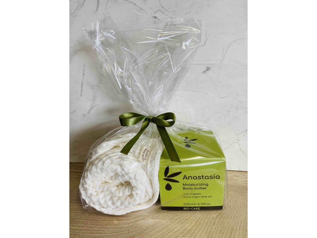 Balíček obsahuje:1x Hydratační tělový krém - 200ml , výživný krém s BIO olivovým olejem a medem, který intenzivně hydratuje, regeneruje a zanechává pokožku jemnou, pružnou a zdravě vypadající.1x Vaflový ručníček ze 100% bavlny – měkký a savý, vhodný i pro děti do 3 let.Proč si náš balíček zamilujete?