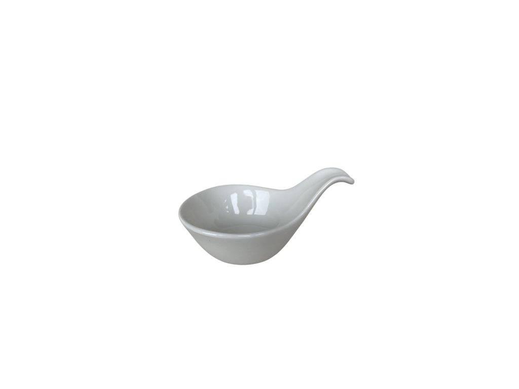 Elegantní bílá porcelánová miska s jemně tvarovaným držadlem, ideální na servírování oleje, omáček, dipů nebo malých pochoutek. Minimalistický design se hodí do moderní i klasické kuchyně a krásně doplní každý stůl.