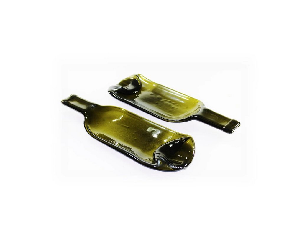 Designová servírovací miska vyrobená z recyklované skleněné lahve zaujme svým originálním tvarem i hlubokým olivově zeleným odstínem.